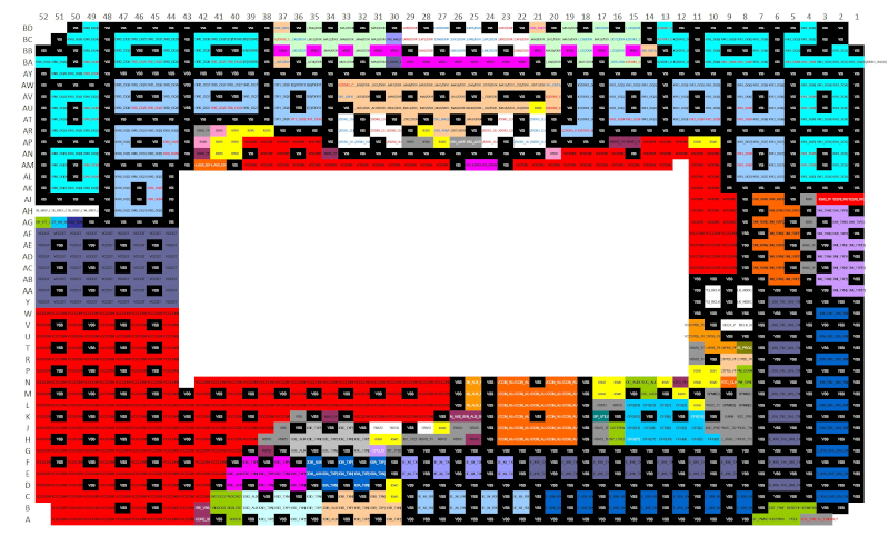 Voilà pour le fun un petit schématique de ses branchements. En noir : La masse électrique. En rouge et en orange (bas) : Les alimentations. Donc avec ses deux fonctions, une bonne partie des pins sont occupés ! Eh oui, il en faut pour assumer les 300W de certains modèles ! Ensuite, nous retrouvons d'autres fonctions : En Bleu foncé, en violet, c'est le PCIe. En orange (droite) et en rose, le DMI (nous y reviendront plus tard). Et en haut, la gestion de la RAM. On comprend donc l'orientation du processeur sur la carte mère, et le positionnement des autres composants : PCIe, Alimentations... En bas, on peut encore retrouver les pistes liées à la gestion HDMI / DP... Mais, sur ce schéma : Aucunes traces d'USB ou autres bus "lents".